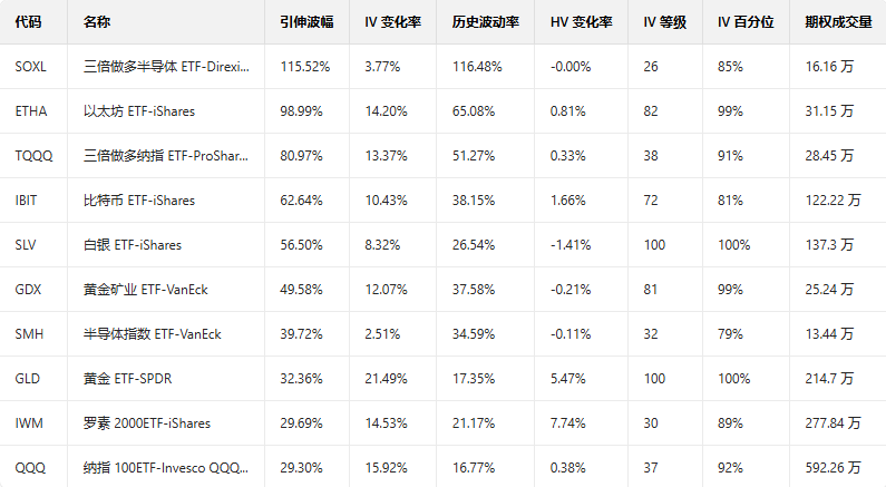 美股ETF引申波幅排行榜前十(标的要求:市值>100亿美元)
